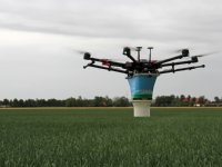 08-07-2020 - Op een proefveld van Profytodsd in Ens zijn met een drone 3 miljoen roofmijten uitgestrooid over 1 hectare uien. De roofmijten moeten de trips opeten en de druk ervan onder controle houden.