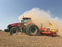 20-08-2014 - Met een Case IH Magnum 340 en een 12-rijïge Väderstad Tempo zaaimachine is in 24 uur tijd een oppervlakte van 306 hectare zonnebloemen gezaaid. Dat is gemiddeld 12,75 hectare per uur.