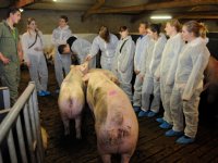 16-03-2012 - Studenten van Van Hall Larenstein reageren heel wisselend op het bedrijfsbezoek aan vermeerderaar Eric Douma in Oosterwolde. 'Maar je merkt dat hun beeld van mens en dier in positieve zin...