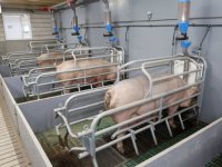 08-01-2013 - Vleesvarkens die drie keer daags droogvoer krijgen via een lange trog nemen minder voer op en groeien langzamer dan vleesvarkens die onbeperkt droogvoer krijgen via een droogvoerbak.