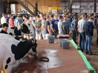 20-04-2018 - Honderd tweedejaarsleerlingen melkveehouderij van het Nordwin college in Leeuwarden deden vrijdag mee aan de veebeoordelingswedstrijd in de manage in Oentsjerk.