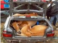 08-01-2014 - Twee dieven in Maleisië sloegen met vier levende koeien in hun personenauto op de vlucht. Twee dieren lagen op de achterbank en twee in de kofferbak, meldt De Telegraaf.