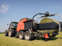 25-05-2012 - Medewerkers van het Veenweide Innovatie Centrum hebben gisteren en vandaag ruim 72 ton droge stof gehooid. Het hooi is bij 70 % droge stof in plastic gebaald.