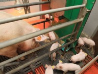 08-01-2013 - Vijf studenten van de HAS in Den Bosch zijn bezig met een onderzoek naar de zoogfrequentie en gewichtstoename van biggen in de Pro Dromi 1 en 2 kraamhokken.