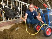 04-08-2020 - Bart Hofsteenge uit het Groningse Ten Boer geeft extra vocht aan zijn koeien via een drench. Wegens ziekte heeft de koe een vochttekort. Hofsteenge ontwikkelde met de Easydrench een systeem...