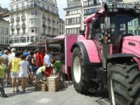 11-08-2015 - Jonge land- en tuinbouwers van de Belgische Groene Kring gaven zondag in Oostende het startschot van 'De Ronde van Roza'. Met een roze trekker en marktkraam trekken ze een maand door...