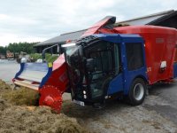 25-07-2017 - De V-Comfort Turbo stroblazer van het Duitse bedrijf BvL is aan de voor- of achterkant van een V-Mix voermengwagen te monteren.