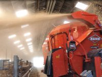 04-05-2020 - Maatschap Tillemans voert zijn runderen en blaast stro in de stallen met de Kuhn Profile Plus 24.2 DL-voermengwagen en Ventidrive stro-instrooier. De machine strooit tot 130 kilo stro per...