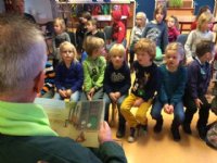 Boer Dankelman leest voor op school