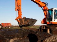 17-03-2015 - Het eerste slib uit de Eemshaven is vanmorgen uitgereden op akkerbouwgrond in de Veenkoloniën. Dat gebeurde bij Stoffer Hofman in Veendam.