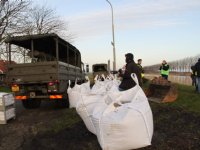 06-01-2012 - Brandweercommandant van regio Groningen Sietse Smit is sinds vanmorgen 05.30 in touw. 'We leggen niet alleen zandzakken bij de dijken, maar spuiten ook de veetransportwagens schoon, om...
