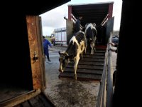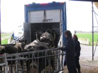 06-01-2012 - De koeien van melkveehouder Aart Muilwijk uit het Groningse Wittewierum gingen vandaag met vrachtwagens naar de voormalige stal van Louw de Winter in Buitenpost.