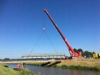 02-07-2018 - Waterschap Vechtstromen is begonnen met de plaatsing van een noodbrug over het Afwateringskanaal bij Gramsbergen. Die noodbrug wordt de tijdelijke vervanging van de Kieftbrug voor lokaal...