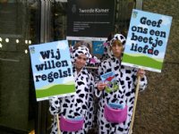 14-02-2013 - WSPA en CIWF voeren vanmorgen actie bij het ministerie van Economische Zaken en op het Binnenhof voor de campagne 'Supporting Better Dairy'.