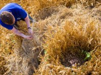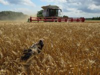 08-08-2019 - Medewerker Jan Nagelkerke van akkerbouwbedrijf Koninklijke Maatschap de Wilhelminapolder redde een nest bruine kiekendieven. Die ontdekte hij tussen de jonge halmen van de wintergerst.