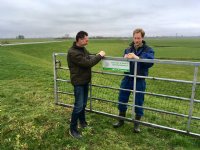 24-05-2018 - Melkveehouder Robert Peek uit Wilnis kreeg woensdag als eerste deelnemer het bordje van project Slimme Vogels uitgereikt.