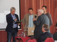 24-04-2012 - Zestien melkveehouders uit het Westerkwartier hebben vanmiddag een kringloopcertificaat gekregen van burgemeester Bert Swart van gemeente Zuidhorn. Frank Verhoeven van adviesbureau...
