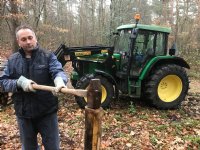 30-11-2018 - Zoogkoeienhouder Frank de Wit uit Swalmen vernieuwt het wildraster tussen de Nederlandse en Duitse grens. Het huidige raster is in 2006 door boeren aangelegd om wilde zwijnen te weren.