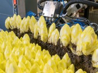 13-05-2016 - Witlofteler Rob de Boer uit Spierdijk leegt de bakken met witlof op zijn bedrijf sinds kort volledig met een robot. De innovatieve kweker bedacht de installatie samen met Rolan Robotics.