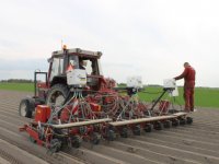 07-05-2015 - Twee dagen na het zaaien ligt de vroeggezaaide witlof op het bedrijf van Peter Versluis in Bant al gekiemd in de rug.