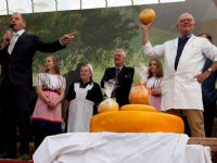 11-06-2014 - De eerste 150 kilo wegende graskaas leverde tijdens de traditionele Woerdense kaasveiling van het jaar een recordbedrag van 19.600 euro op.