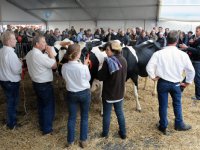 24-10-2012 - Melkveehouder Freek de Jong uit Montfoort is de grote winnaar van de fokveekeuring vandaag in Woerden. Hij werd kampioen bedrijfsgroepen. Verder werd zijn Annie 137 (van Canyon-Breeze...