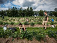 05-08-2020 - Om het zicht op het 100 hectare grote zonnepark van Powerfield bij Vlagtwedde te beperken, plantte Bernard Hazenberg vorig voorjaar 24 hectare blauwe bessen. Samen met twintig Poolse...