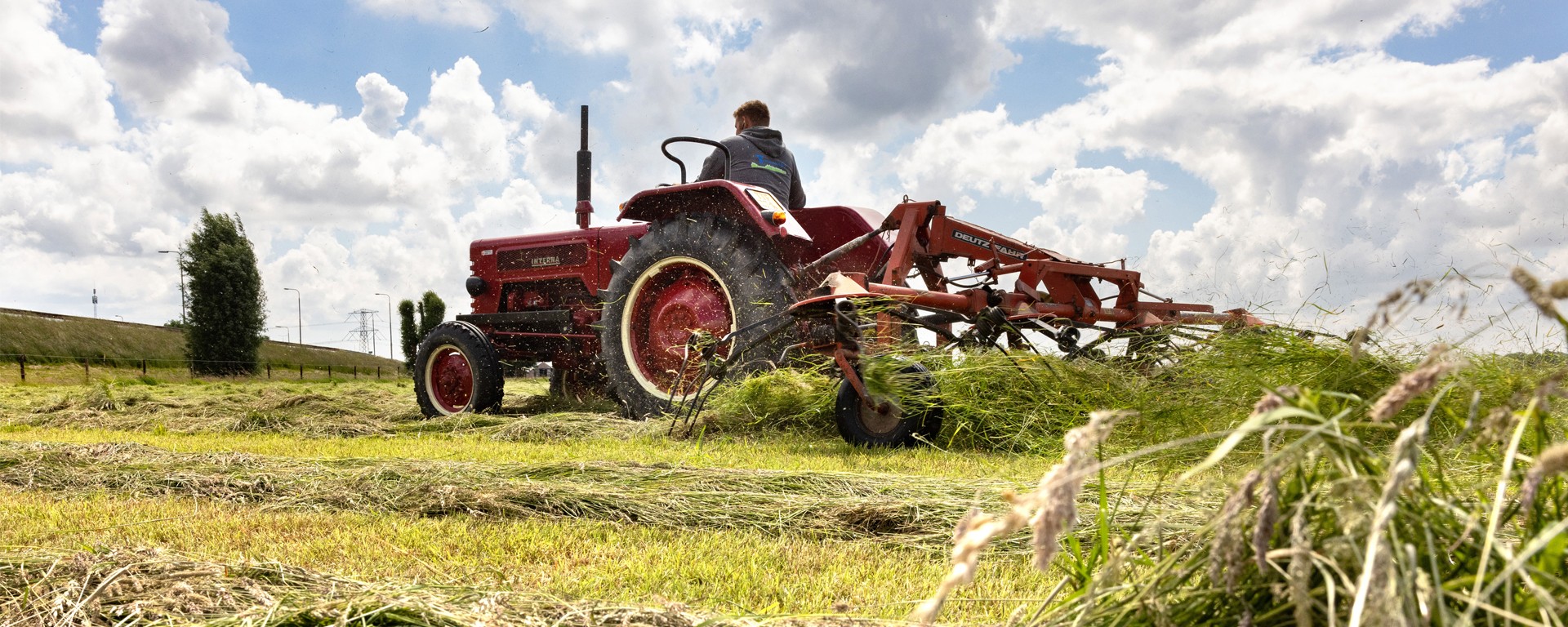 Dirk Hol legde Niels Terlouw in Heinenoord vast die gras maaide voor zijn paarden. Regenbuien maakten het lastig om hooi te maken, toch waagde de paardenhouder het erop. Deze foto is verschenen in Nieuwe Oogst van 4 juni 2022, pagina 20.